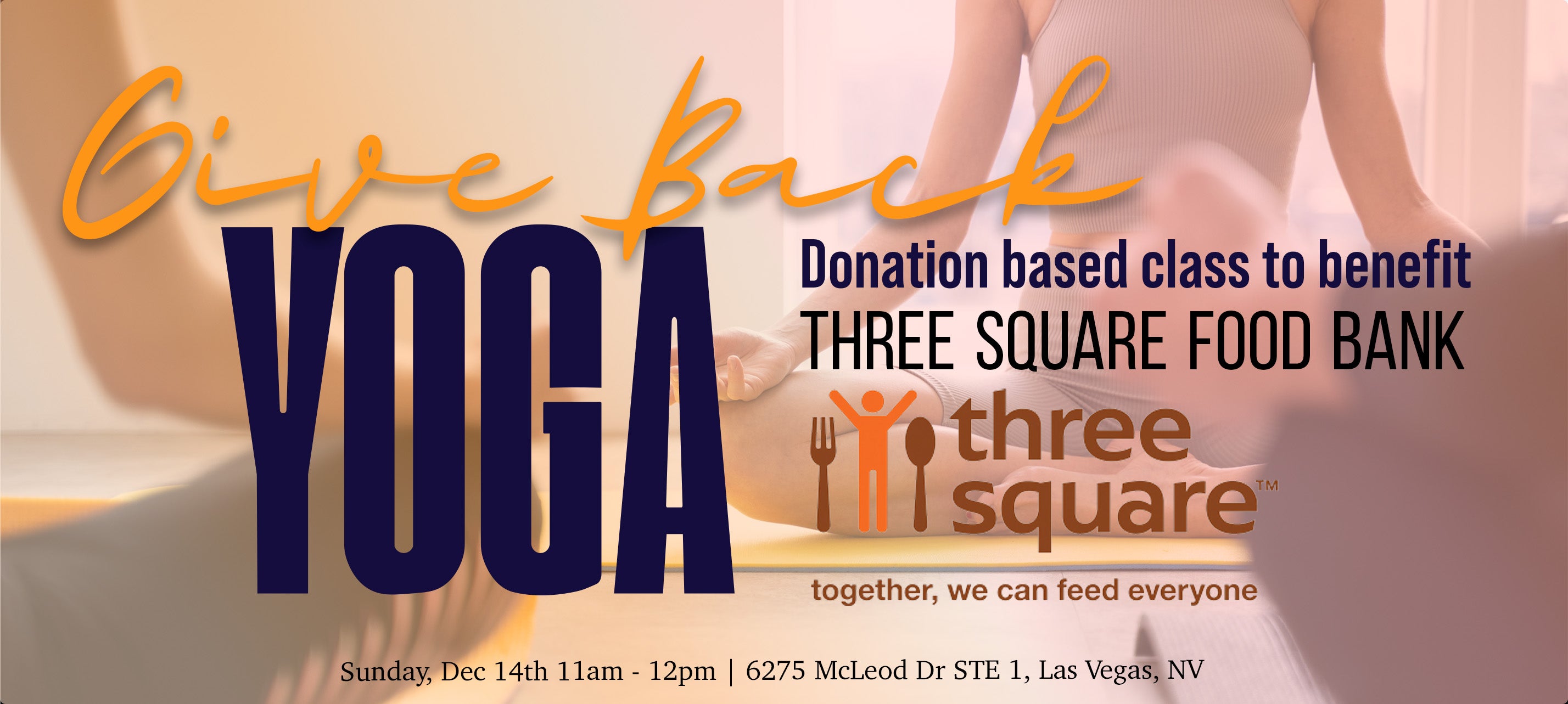 This is a donation-based class, and 100% of monetary donations will go to Three Square.